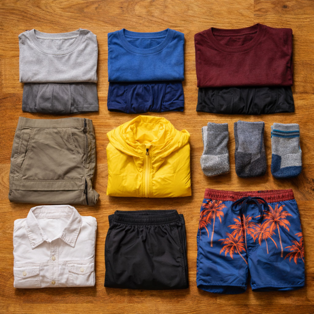 Zip-off pants are very useful, and I also take a pair of comfortable and lightweight shorts and a white shirt with me that I can wear when I arrive at my daily destination. The white shirt with long sleeves can also be useful to cover your skin when exposed to the sun. I always take a light hoodie or thermo-sweater for the cooler evenings and dawns.