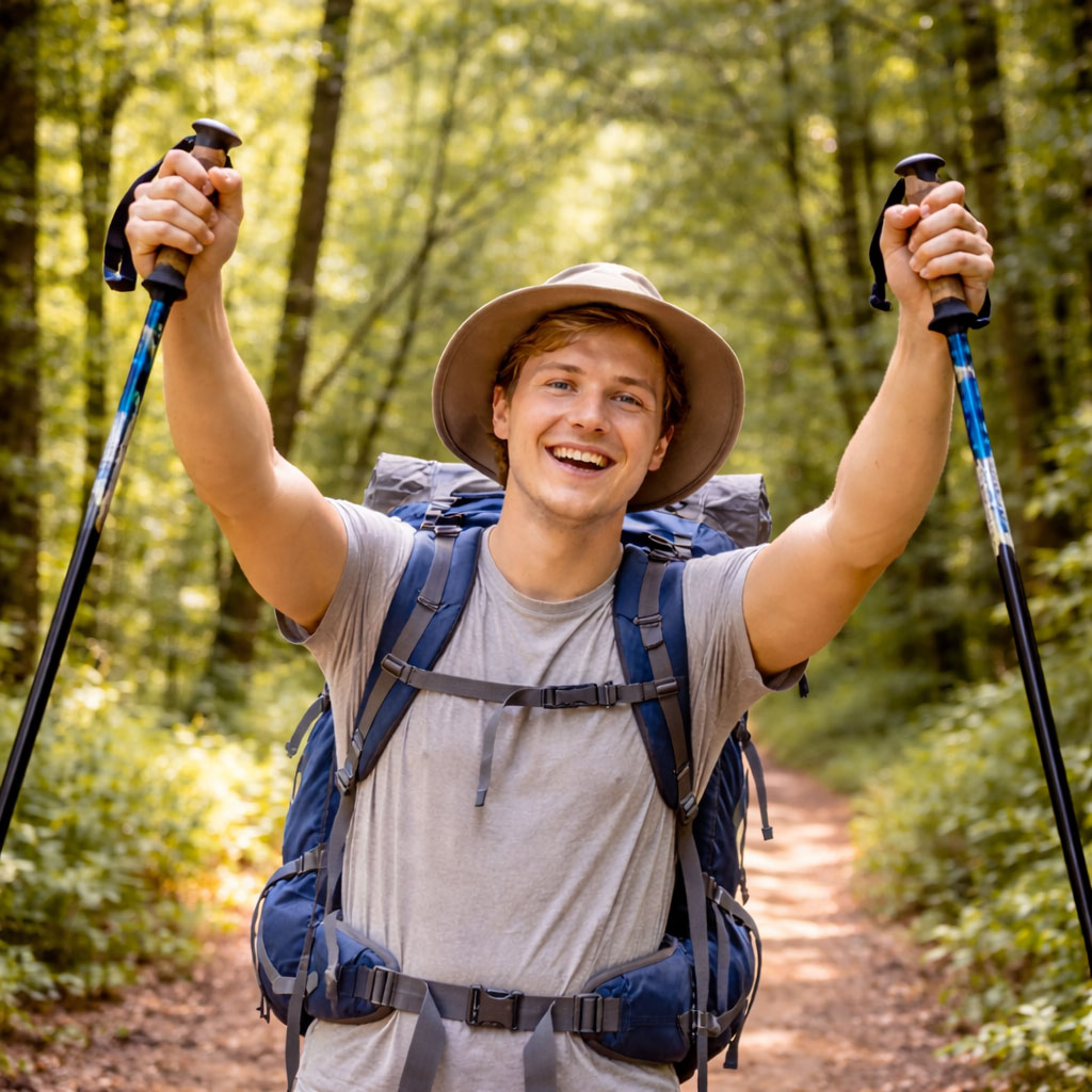Look for foldable, lightweight options that are suitable for travelling on planes. I also recommend obtaining protective rubber tips for the ends of your sticks, as you’ll primarily be walking on flat, rough surfaces that can cause vibrations and wear down the tips after a few hundred miles. If the size is not adjustable, make sure to buy one in the proper size.
