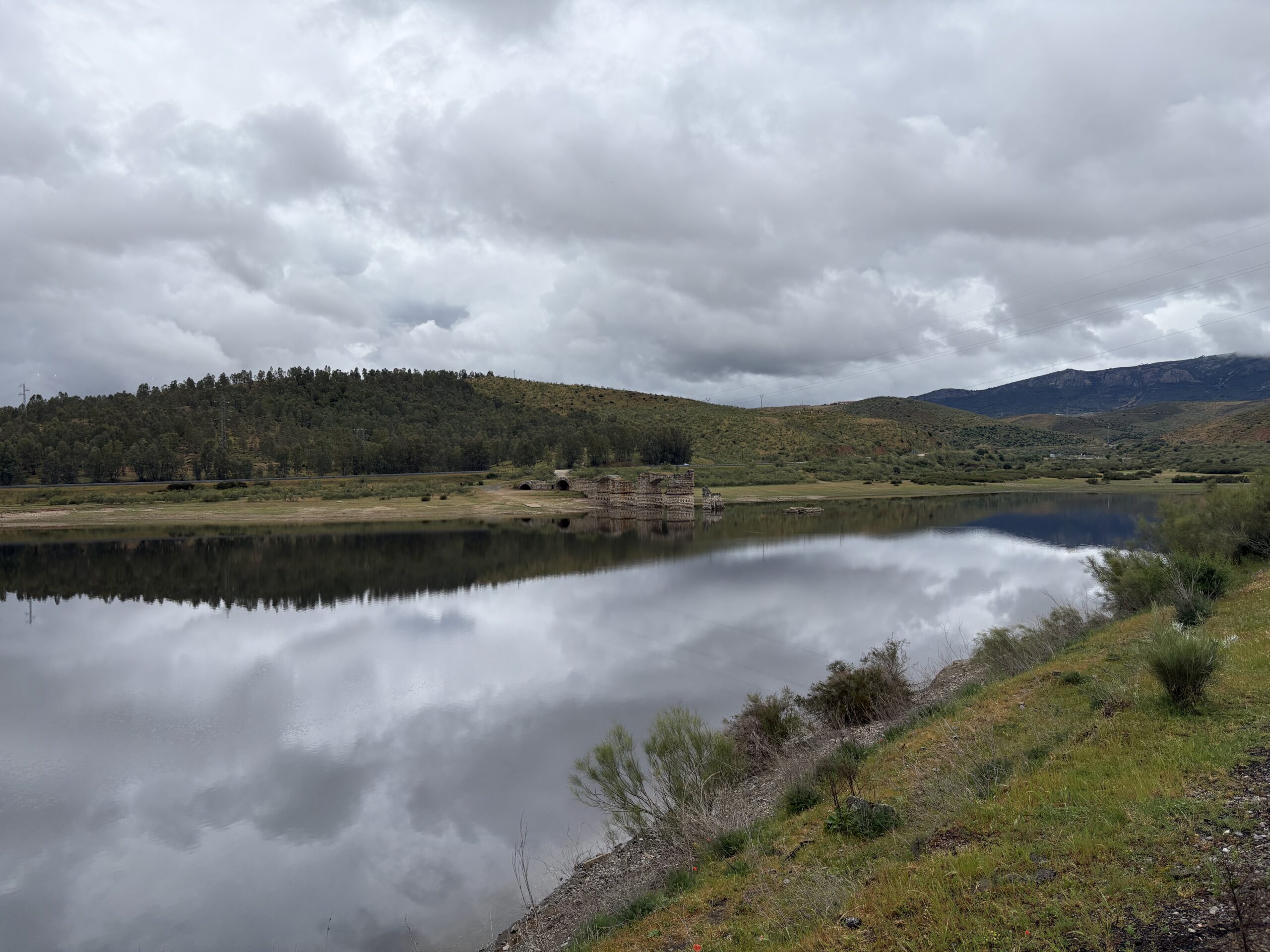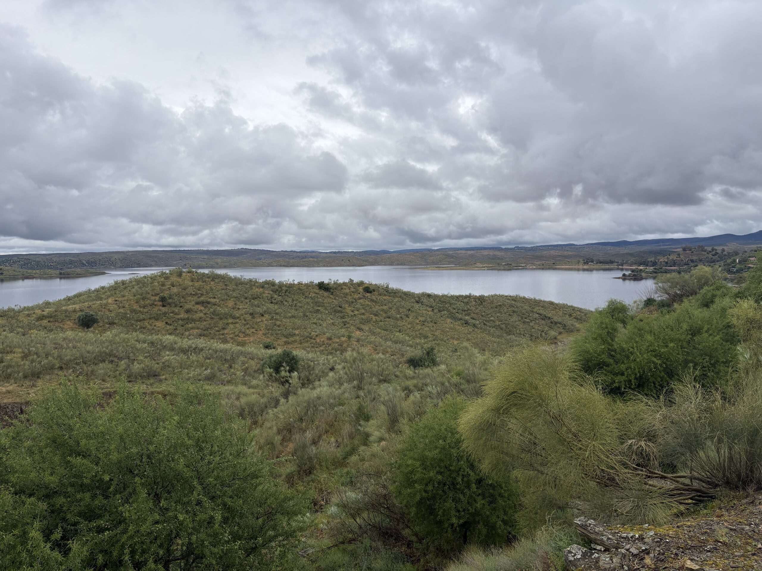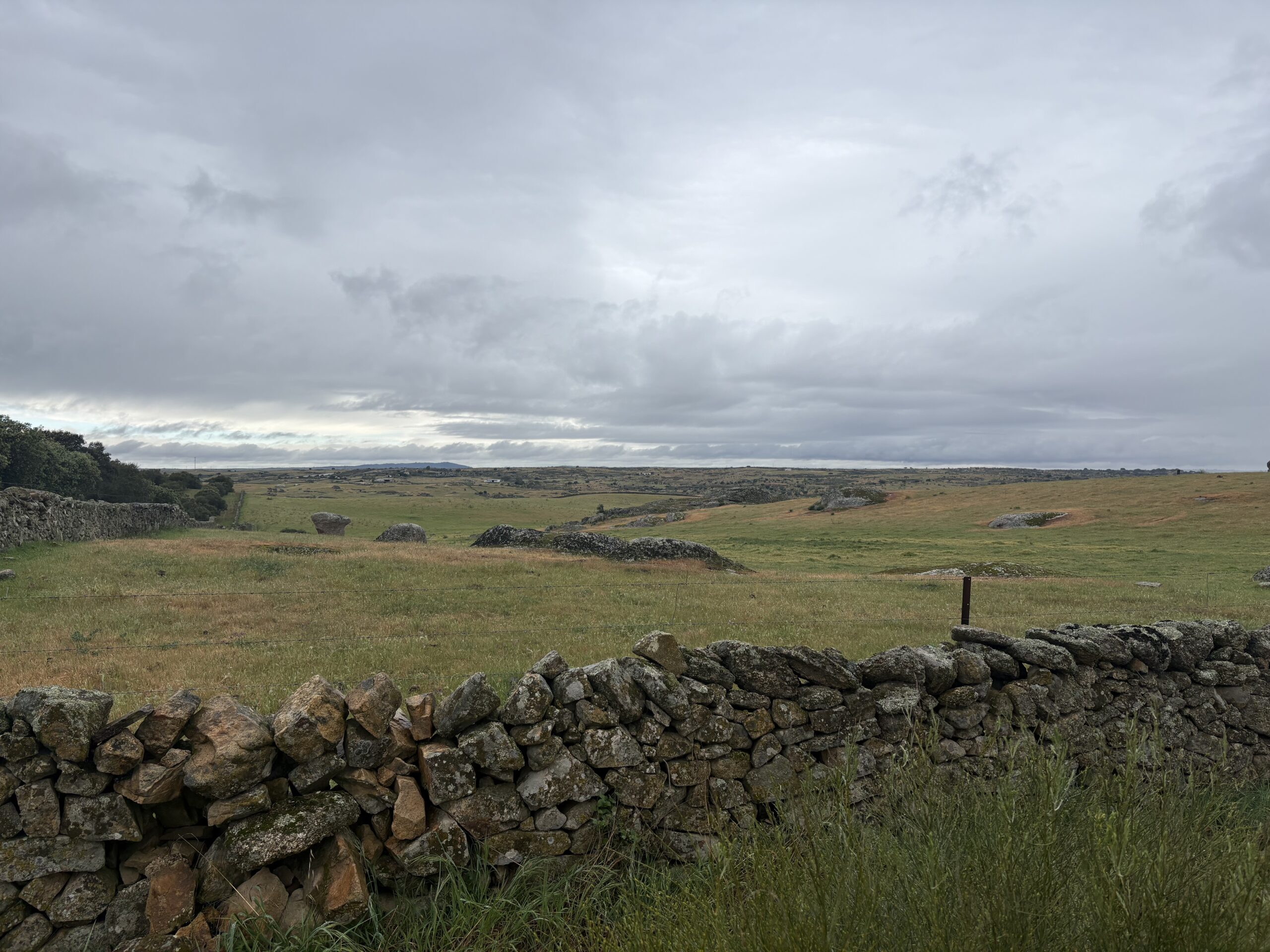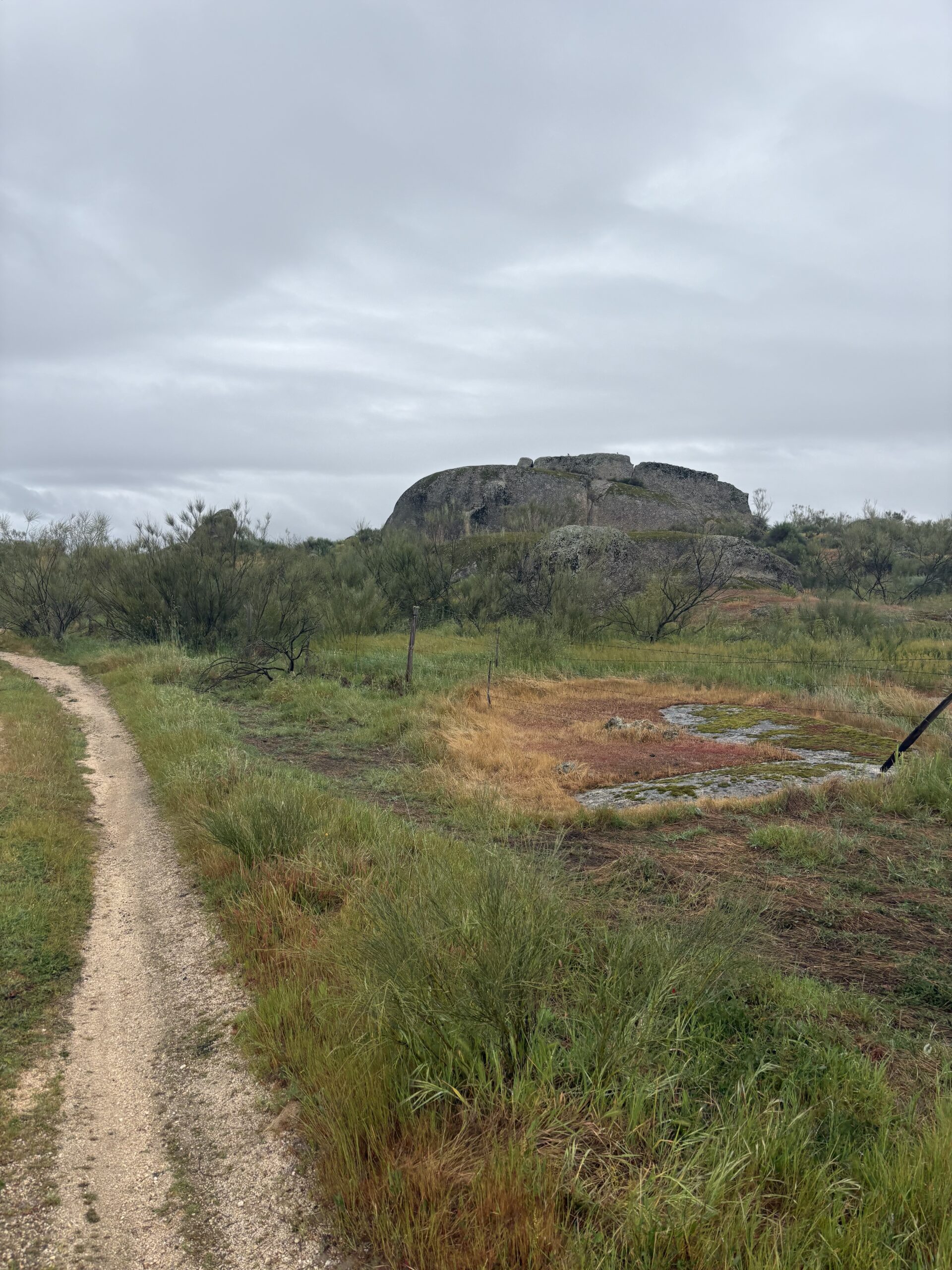 I had a rich breakfast at around 11:00 and continued my way. Leaving Casar de Cáceres, it started to rain constantly for about 2 hours with varying intensity. This was the first time I also had to open my umbrella.