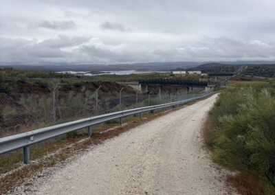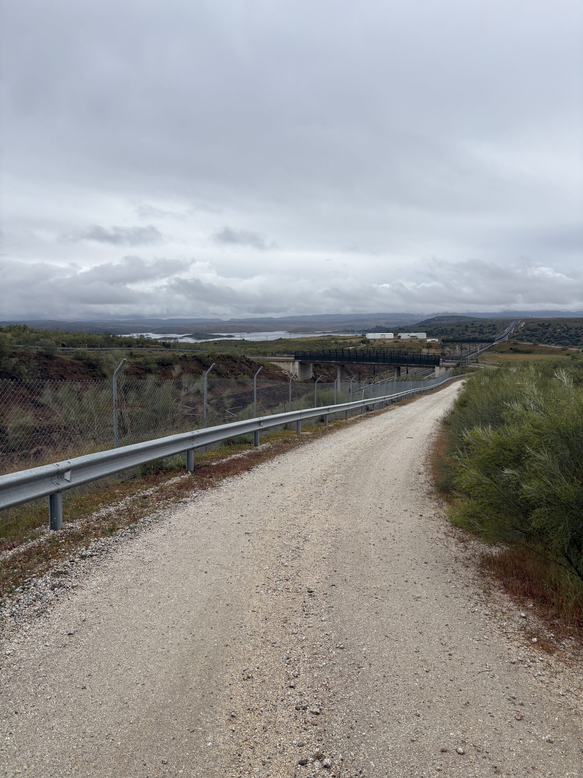 By 14:00, I reached the high-speed railway after crossing through the hills. The trail, as well as a path for animals, crossed the tracks through a bridge. Spain is renowned for the well-developed high-speed rail system. The average speed of the trains in Spain is close to 200 km/h. There are no railroad crossings; the tracks are protected by fences and cameras.