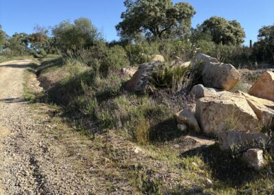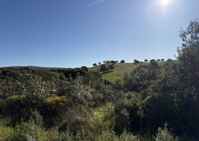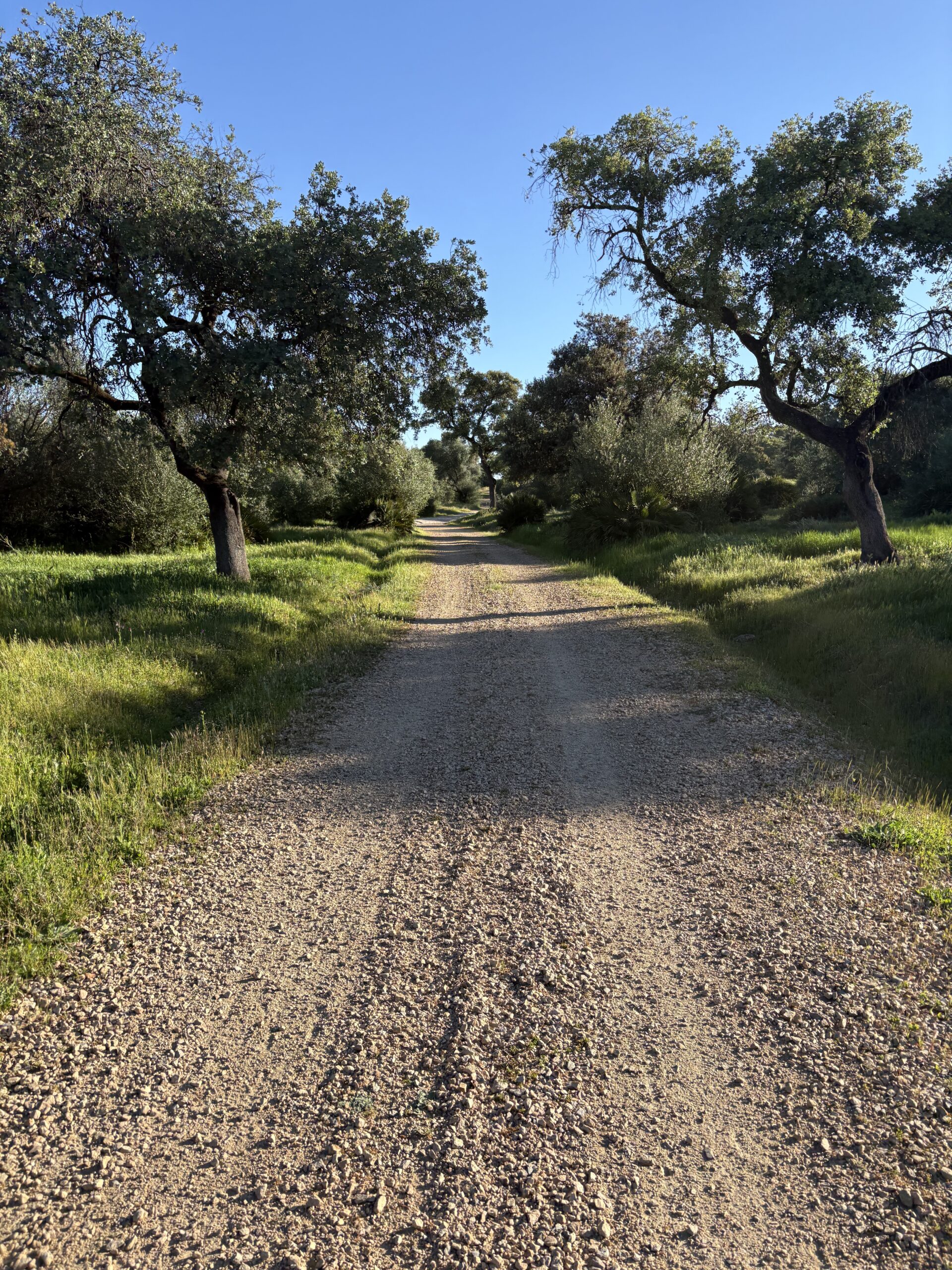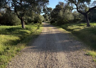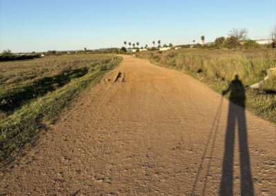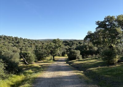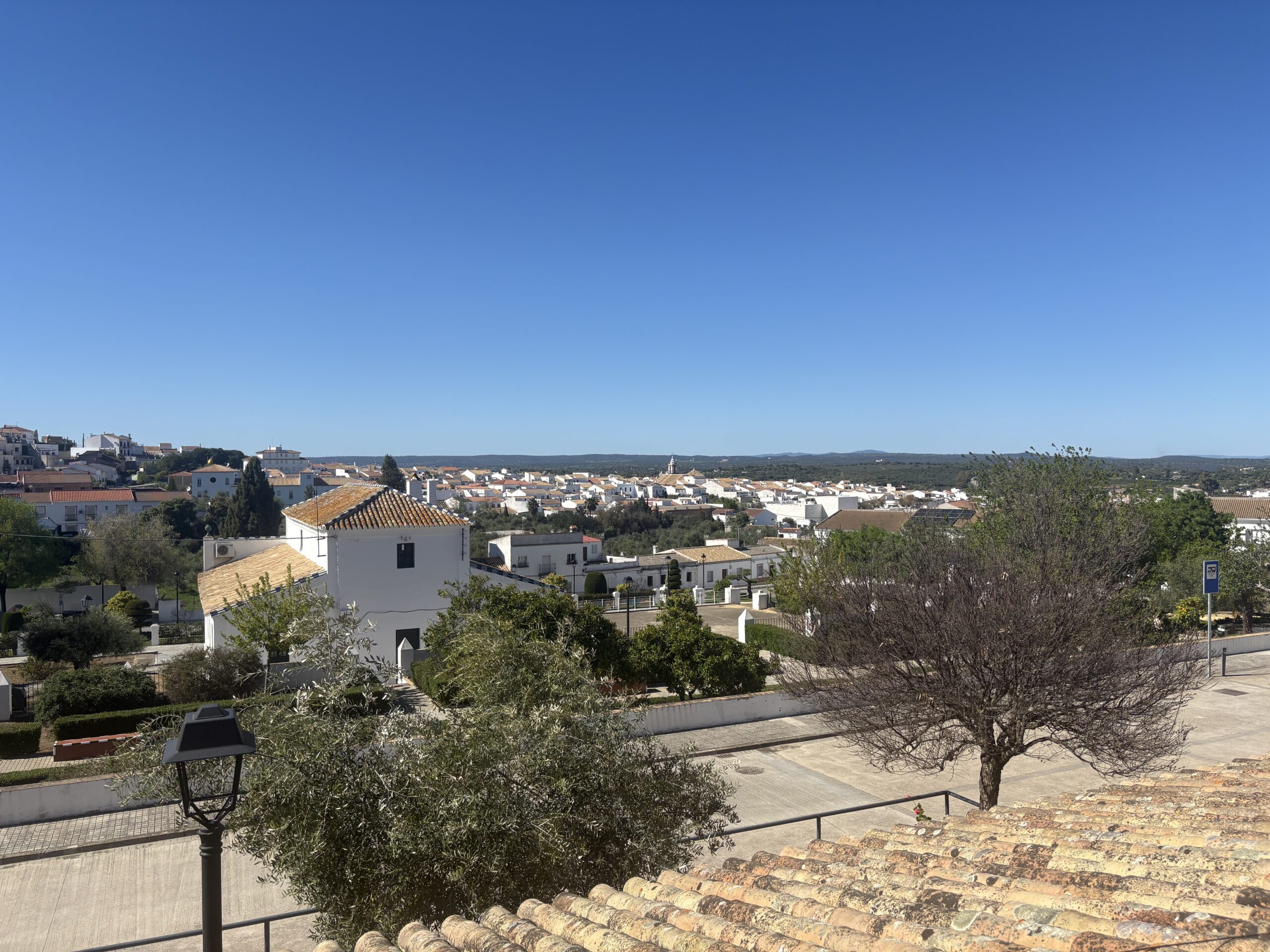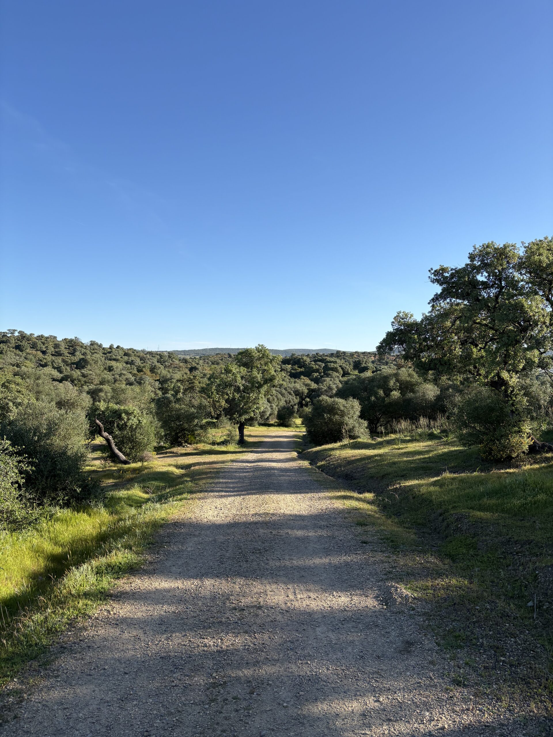 I had some sweets for breakfast and left the albergue shortly after 08:00, still at dawn. It was 9°C in the morning. A bit chilly. After leaving Guillena by crossing a river, I reached the industrial hub of the town in about 30 minutes. From here the Camino goes through olive gardens and solar panel parks. The terrain was rocky but easy to walk. I was much slower today, however, because the route was constantly ascending. There were no climbs, just a slow ascent.