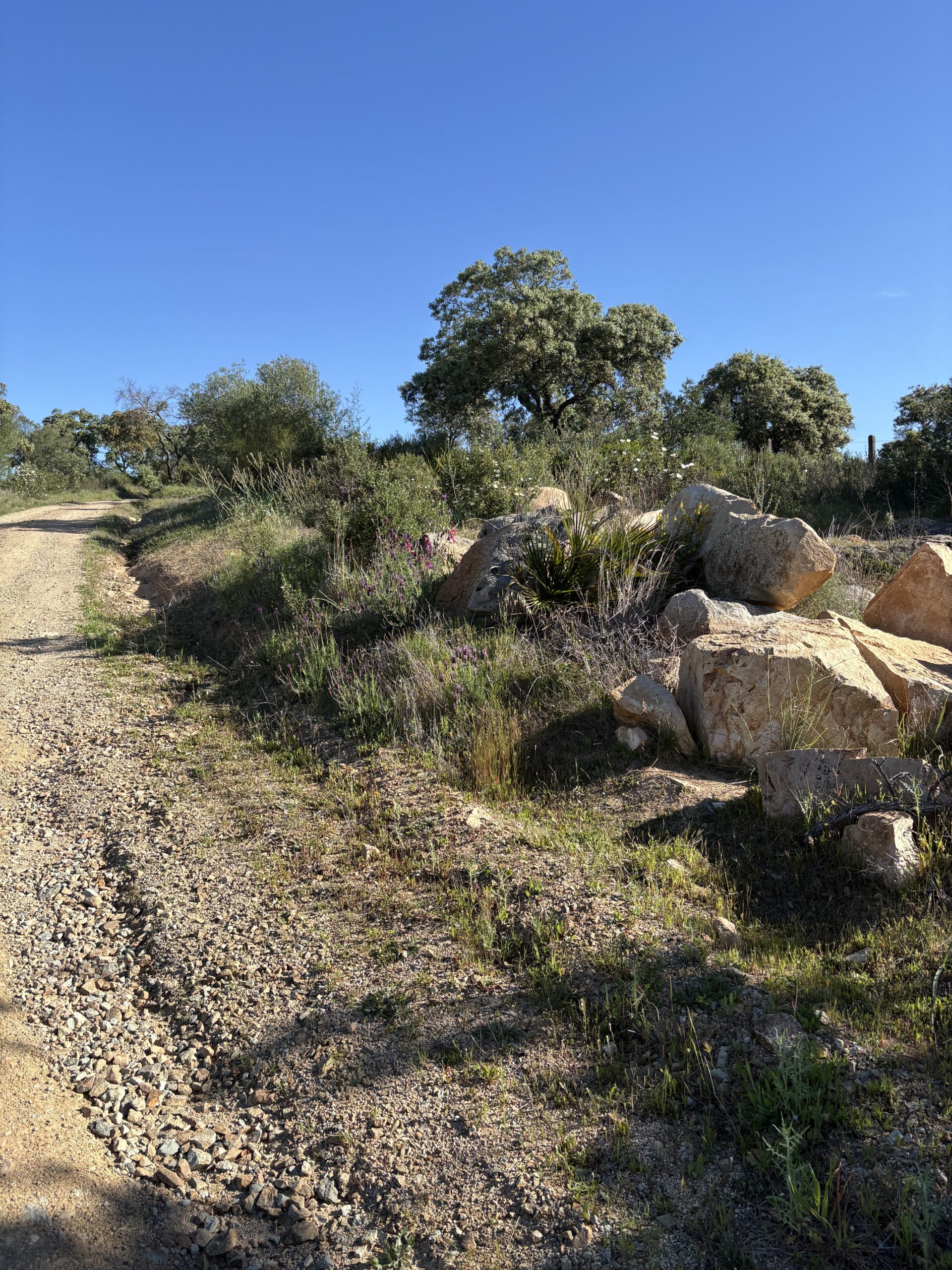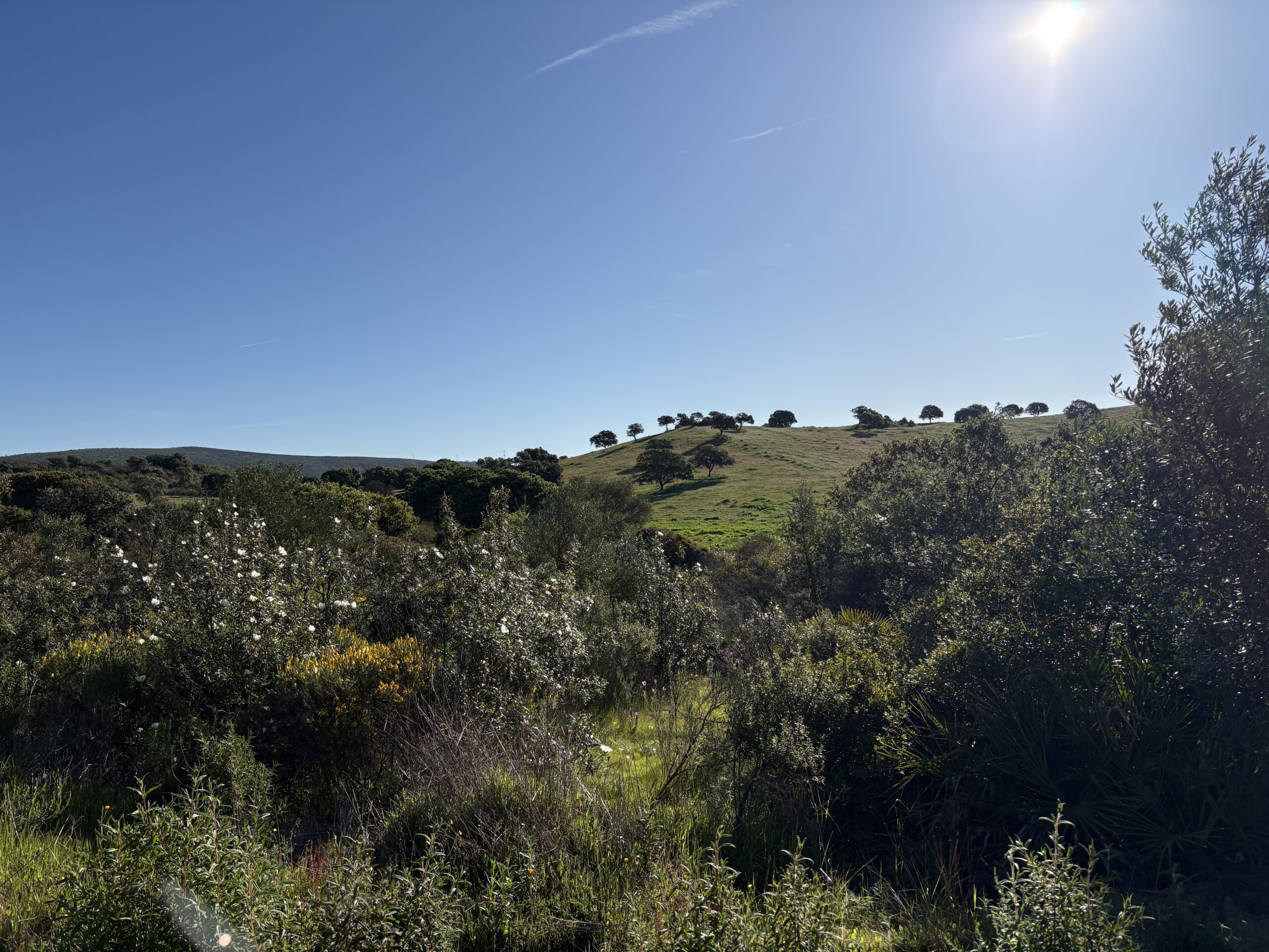 Spring is beautiful here. Rockroses are blooming everywhere, the grass is still green, and the air is fresh. This spring is different from what I am used to. After 11:00, you can already feel the power of the sun.